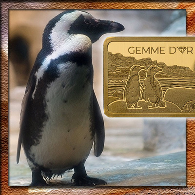 Дело не только в форме монеты. На реверсе отчеканена пара африканских пингвинов. Удивительно, но факт: пингвины в Африке проживают. Речь идёт о Spheniscus demersus, чей ареал обитания находится на самом юге континента, захватывая Намибию и ЮАР, а также прилегающие к ним острова. Бенгельское течение приносит сюда холодные воды из Антарктики, делая климат для пингвинов вполне комфортным. Вторым фактором, выделяющим монету, стал мандариновый гранат, известный также, как спессартин. Этот вид граната имеет не привычный бордовый окрас, а оранжево-жёлтый или жёлто-коричневый. В Африке спессартин ювелирного качества (а на монете именно такой) добывают только на Мадагаскаре.