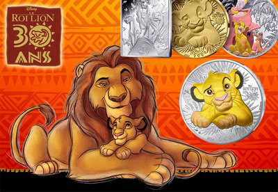 Недавно российские монеты «Мультфильмы» получили дополнение в виде «Ёжика в тумане», но коллекционеры этого направления активно собирают и зарубежные позиции. В ноябре их порадует Франция. Время летит незаметно, и многим сейчас трудно поверить, что с момента выхода на экраны диснеевского «Короля Льва» минуло уже 30 лет. К этому юбилею Парижский монетный двор выпустил подборку из семи монет, отчеканенных из драгоценных металлов. Часть из них сделали цветными.