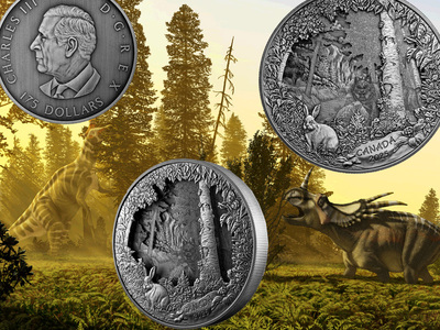 Следующую позицию пришлось ждать почти три года. На этот раз Елизавету II на лицевой стороне сменил портрет Карла III. Поменялась и технология чеканки с Proof на Antique, поэтому фоном для британского монарха стали не россыпи кленовых листьев, а хорошо различимые линии подгравировки, выделенные чернением. Но внимание коллекционеров, конечно же, привлекла другая сторона. Для второй монеты решили не брать ранее отчеканенный прототип. Разработать концепцию с нуля поручили Юлиусу Томасу Чотони (его инициалы JC отчеканены на одном из листьев необычной монеты Канады из серебра высшей очистки). Вместо лиричной картинки из жизни птиц нам показывают противостояние хищников и жертв, заложенное природой. На переднем слое крупно отчеканены полуреликтовая подкрыльевая бабочка (Catocala semirelicta) и заяц-беляк (Lepus americanus). Однако на следующих слоях мы увидим рысь (Lynx canadensis), выслеживающую зайца, и хохлатого дятла (Dryocopus pileatus), представляющего опасность для бабочки. Но и это ещё не всё. На дальнем плане различима стая волков, готовых напасть на рысь, которая из хищника превратится в жертву. Такая расстановка сил и объясняет название монеты – «Хищники и жертвы».