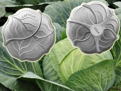 Десятилетие хождения отметили евро монеты Латвии (это небольшое прибалтийское государство использует единую валюту Европы с 2014 года). Кроме монет для ежедневных расчётов здесь разрабатывают и коллекционные выпуски. Например, монеты 5 евро Латвия эмитирует исключительно для собирателей. И здесь Банк Латвии умеет удивить. На днях он анонсировал серебряные монеты в форме капусты.