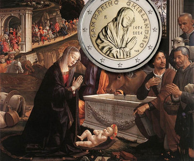 Среди обиходных монет еврозоны особняком стоят деньги карликовых государств: Монако, Ватикана, Андорры и Сан-Марино. Эти страны формально не входят в Евросоюз, но оказались в сфере еврозоны и даже добились права собственной чеканки. Однако разрешённая им эмиссия настолько мала, что в обороте их погодовка встречается редко. А получить на сдачу юбилейные 2 евро можно считать настоящим чудом, потому что весь тираж пакуется в блистеры и продаётся коллекционерам гораздо выше номинала. Но коллекционеров таких монет достаточно много, и на днях подобные нумизматические собрания дополнили монеты Сан-Марино в честь Доменико Гирландайо.