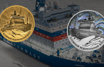 Заложенный в мае 2015 года ледокол «Сибирь» оказался вторым не только в нумизматической серии, но и в проекте 22220, призванного создать плеяду универсальных двухосадочных атомных ледоколов. А ещё это вторая «Сибирь» в отечественном ледокольном флоте, так как в советский период под тем же именем на Севере ходил (в том числе и к самому полюсу) корабль, выпущенный в рамках проекта 10520. Спуск на воду пришедшей ему на смену «Сибири» нового поколения провели в сентябре 2017 года, а через несколько лет её успешно приняли в состав российского атомного флота. Так что главные трудовые подвиги для неё ещё впереди. В отличие от славной предшественницы эта «Сибирь» может проламывать ледяные массивы до воды не только в морском бассейне, но и на реках, меняя осадку.