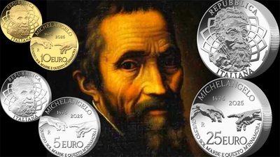 За 88 лет, отмеренных ему Судьбой, Микеланджело Буонарроти успел попробовать многое. Если бы он выбрал единственное направление, то достижения на нём уже увековечили бы его. Сам Микеланджело тяготел к скульптуре и архитектуре, но его талант нашёл применение и в других сферах искусства. Культурным переворотом Европы считается статуя Давида, созданная молодым скульптором во Флоренции. «Того, кто видел эту работу, больше не удивит ни одна скульптура в мире», - такой отзыв оставил о ней великий Вазари. А ведь это был вызов изначально: никто из величин того времени не рискнул высекать библейского героя из треснувшей и подпорченной пребыванием в неблагоприятной среде мраморной глыбы. Среди архитектурных шедевров Микеланджело реконструкция купола собора Святого Петра (Ватикан) и ансамбль площади Капитолия (Рим). Микеланджело в 2025 году будет посвящена ещё и сан-маринская монета 2 евро: Италия её отчеканит на Монетном дворе Рима, выпустившего и серебро с золотом юбилейной серии. На реверсе биметалла Сан-Марино воплотят рисунок с Клеопатрой.