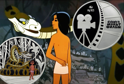 Как известно, Каа – один из персонажей сборника новелл Киплинга «Книга джунглей», сочетающий в себе и жестокость (прочие обитатели леса, кроме Маугли, побаиваются его), и великую мудрость. Хотя сам ММД медаль «Год Змеи» из серебра назвал «Удав Каа», перед нами скорее тигровый питон. Всесоюзную известность и Маугли, и Каа принёс пятисерийный мультфильм конца 1960-х гг., созданный Романом Давыдовым на киностудии «Союзмультфильм» и объединённый в 1973 году в полнометражную ленту. Так как медаль выпущена Московским монетным двором в кооперации с этой студией, основой для жетона послужил кадр из фильма.