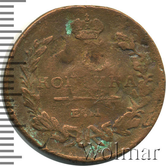Реверс монеты 1 копейка 1819 года ЕМ-НМ