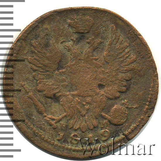 Аверс монеты 1 копейка 1819 года ЕМ-НМ