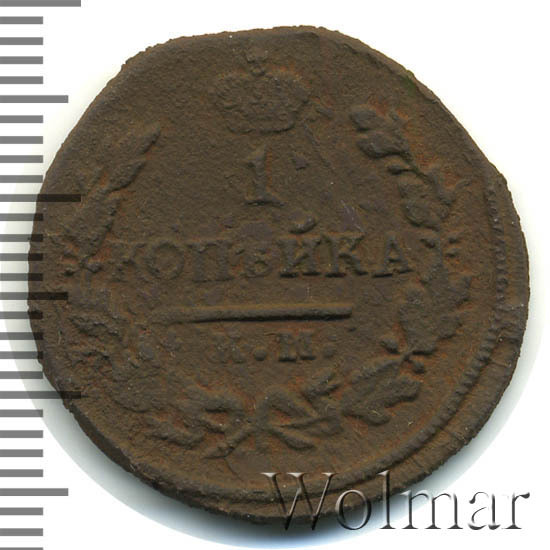 Реверс монеты 1 копейка 1821 года КМ-АМ