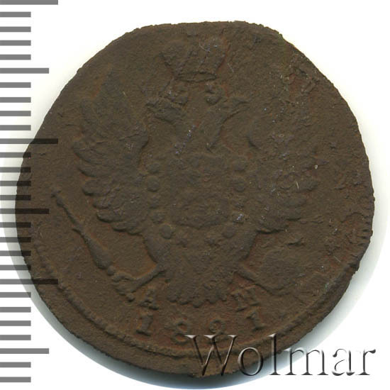 Аверс монеты 1 копейка 1821 года КМ-АМ