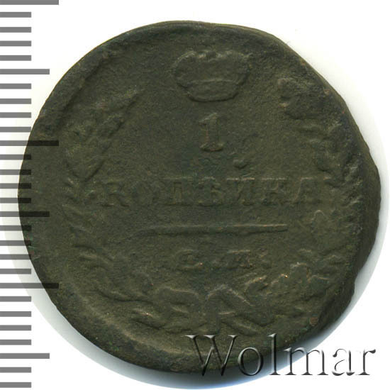 Реверс монеты 1 копейка 1822 года ЕМ-ФГ