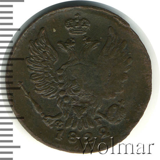 Аверс монеты 1 копейка 1822 года ЕМ-ФГ