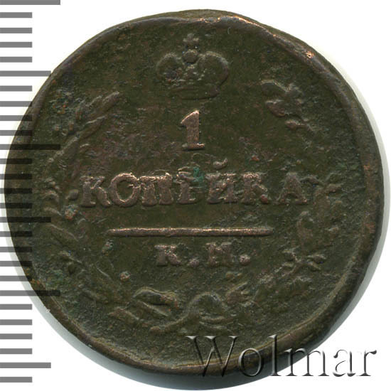 Аверс монеты 1 копейка 1822 года КМ-АМ