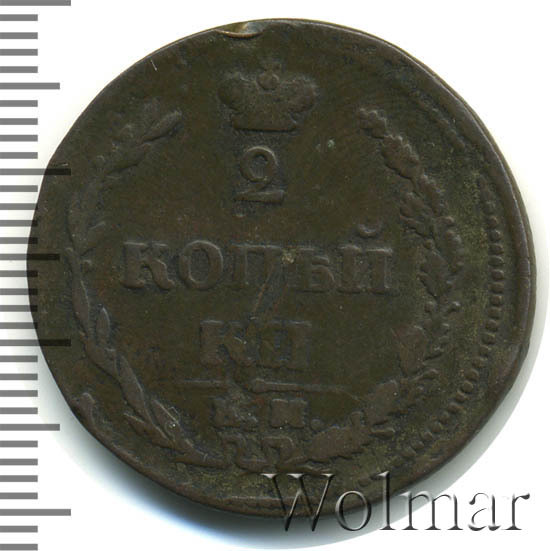 Реверс монеты 2 копейки 1810 года ЕМ-НМ большая - узкая