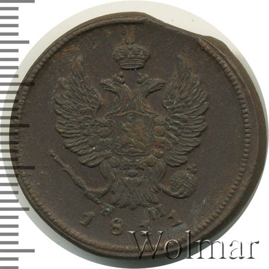 Аверс монеты 2 копейки 1811 года ЕМ-НМ гурт гладкий