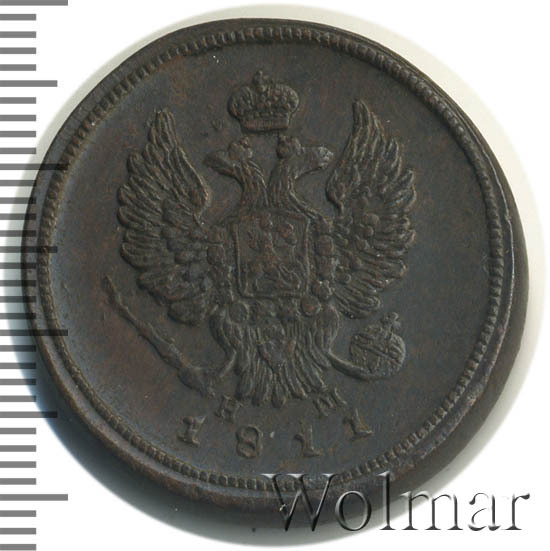 '2 копейки 1811 ЕМ-НМ гурт гладкий'