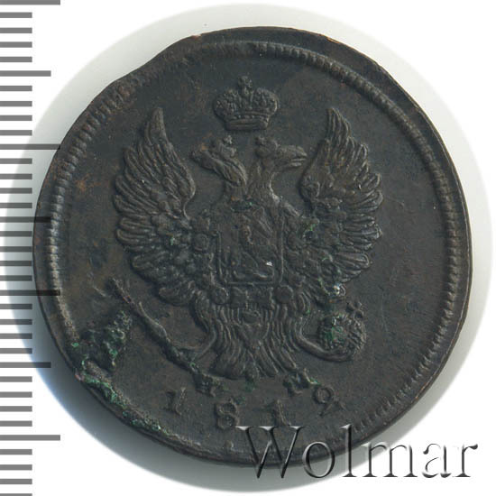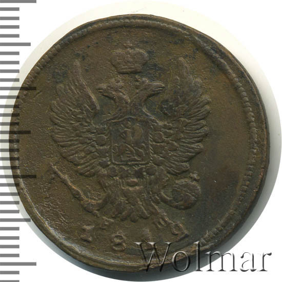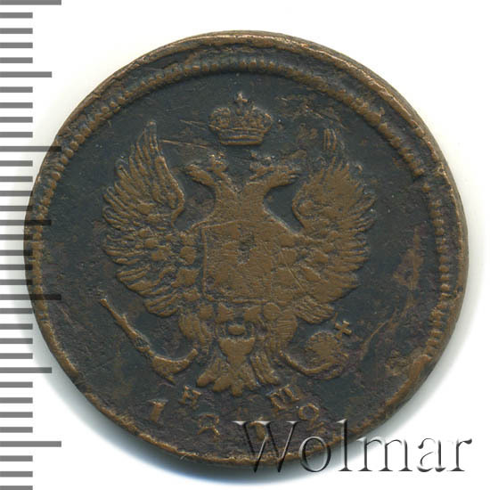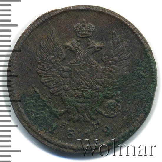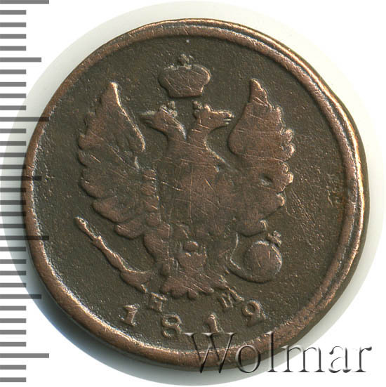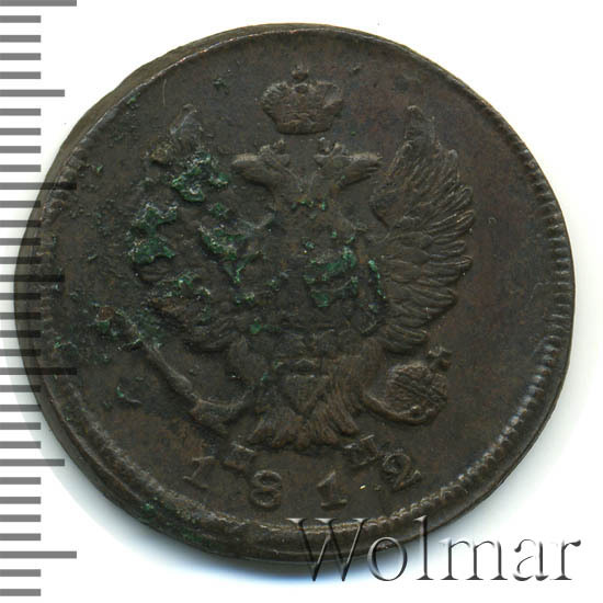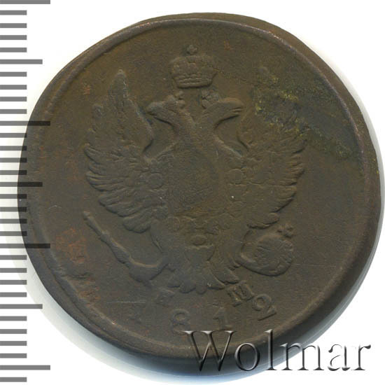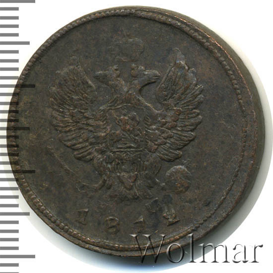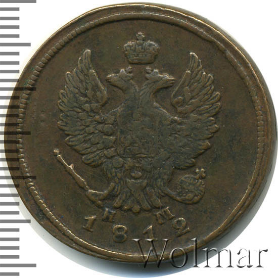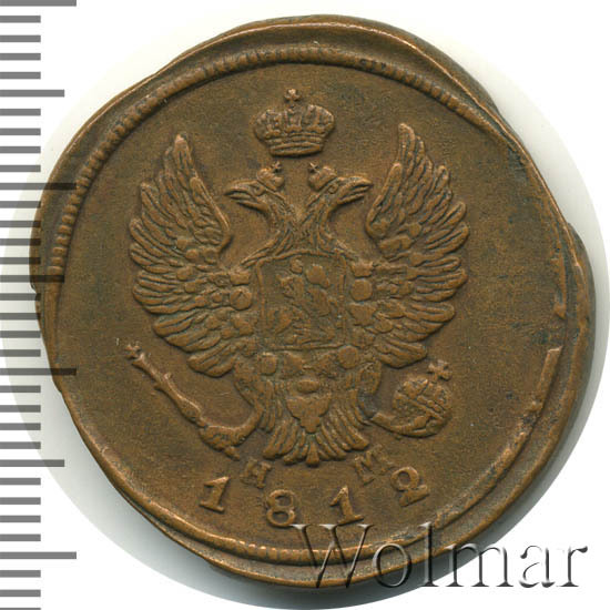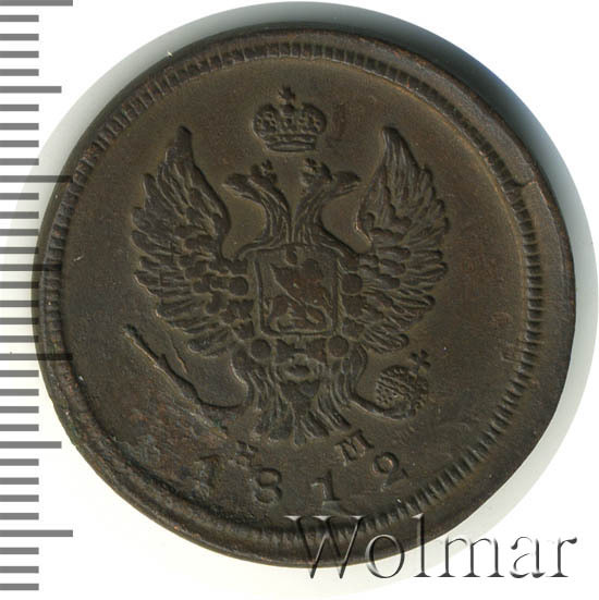 Аверс монеты 2 копейки 1812 года ЕМ-НМ гурт гладкий