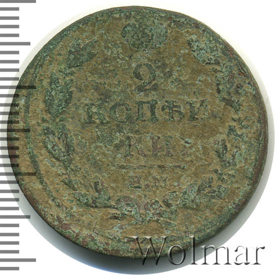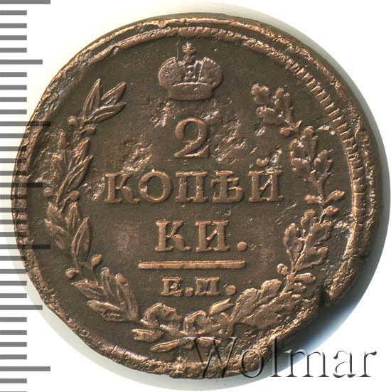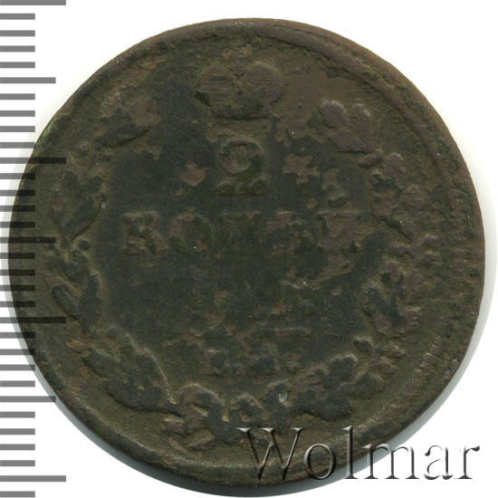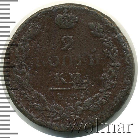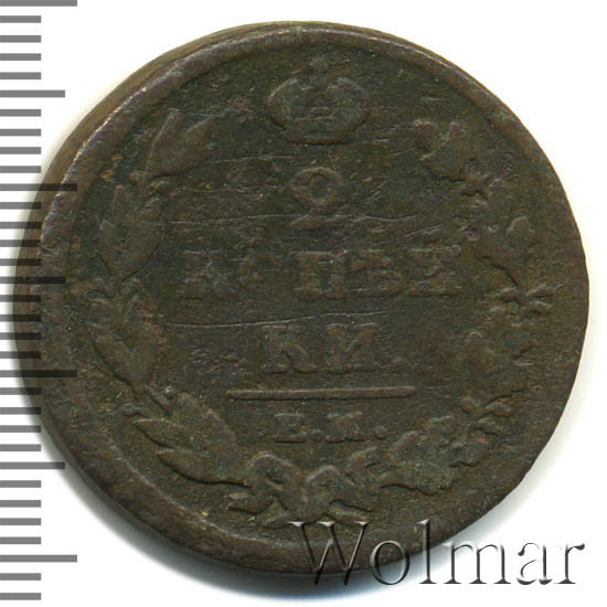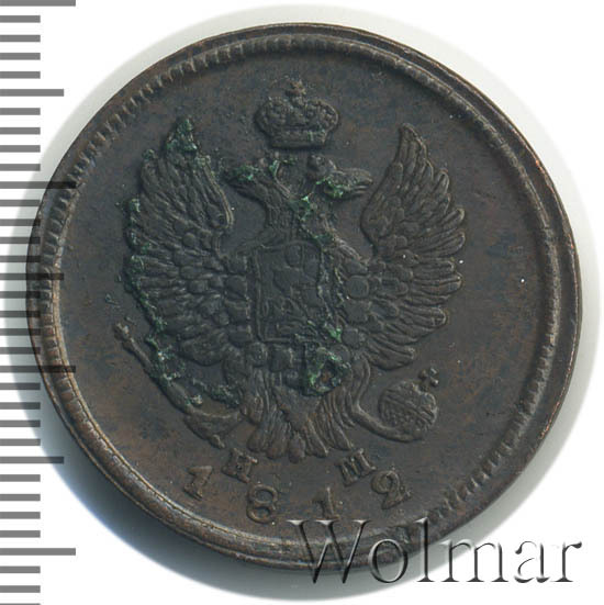 Реверс монеты 2 копейки 1812 года ЕМ-НМ гурт гладкий