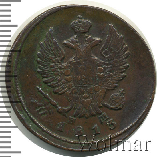 Аверс монеты 2 копейки 1813 года ЕМ-НМ