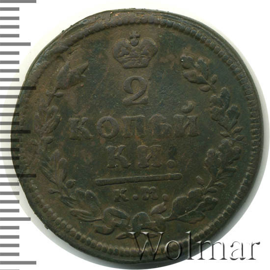 Реверс монеты 2 копейки 1814 года КМ-АМ