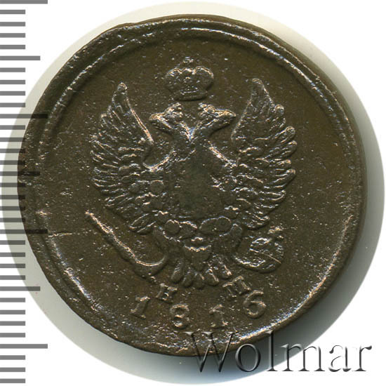 Аверс монеты 2 копейки 1816 года ЕМ-НМ