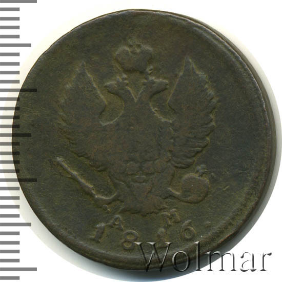 Реверс монеты 2 копейки 1816 года КМ-АМ