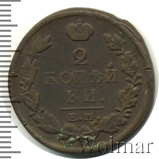 Реверс монеты 2 копейки 1817 года ЕМ-НМ