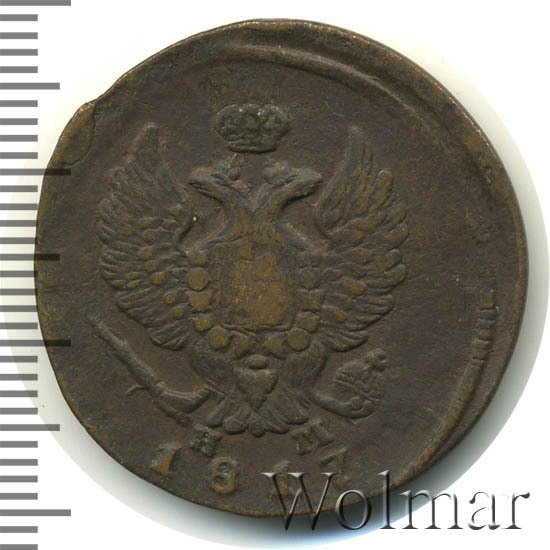 Аверс монеты 2 копейки 1817 года ЕМ-НМ