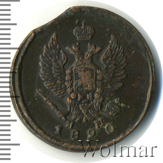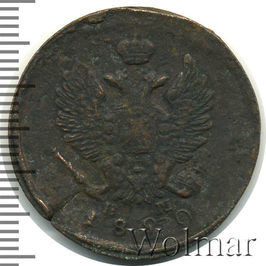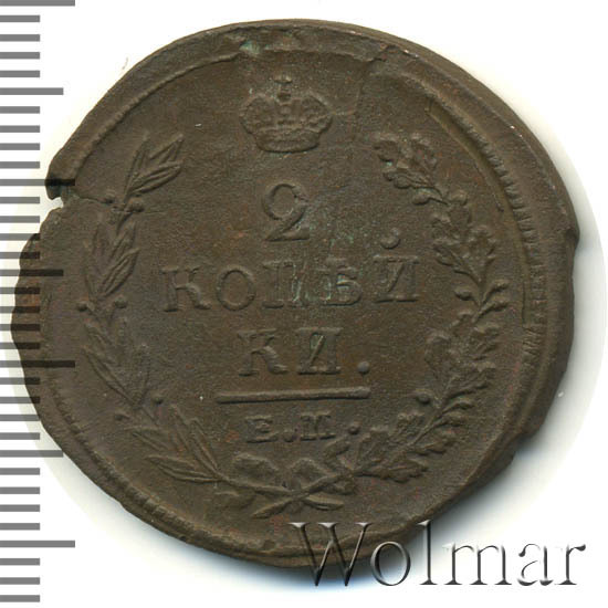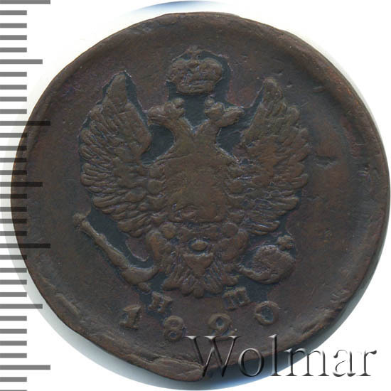 Аверс монеты 2 копейки 1820 года ЕМ-НМ