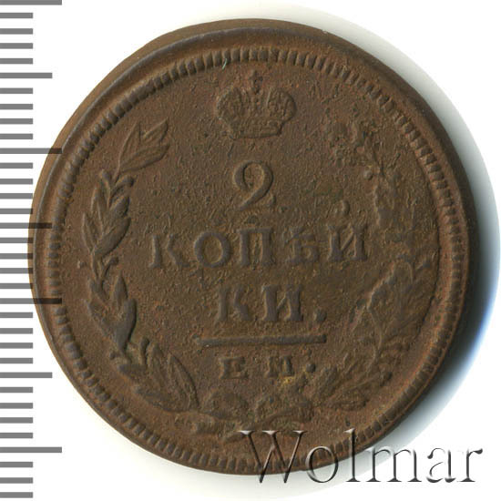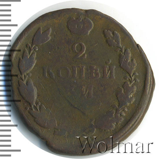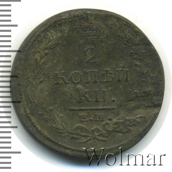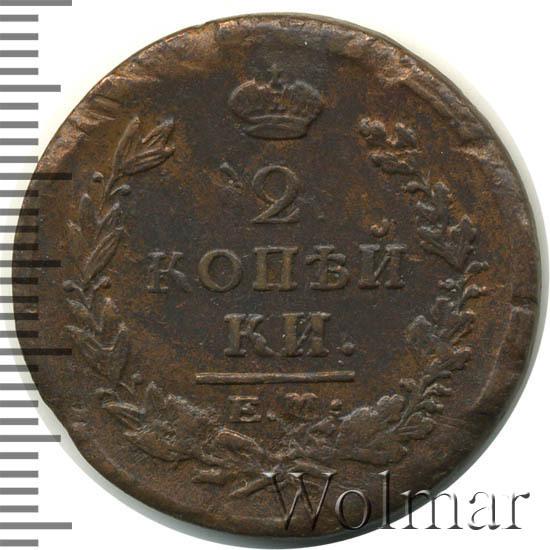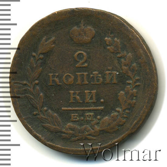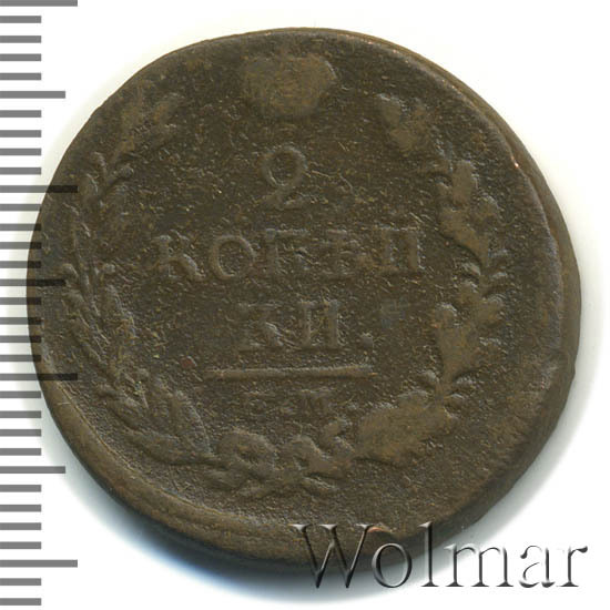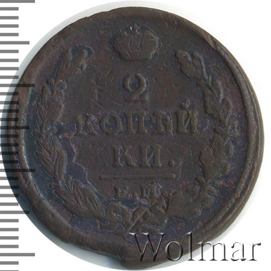 Реверс монеты 2 копейки 1820 года ЕМ-НМ