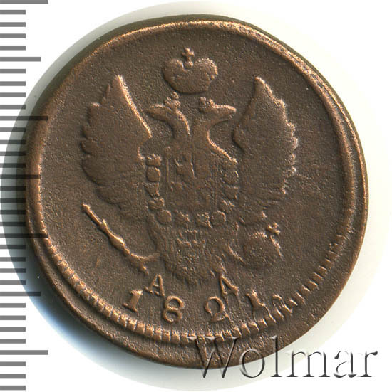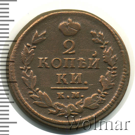 Аверс монеты 2 копейки 1821 года КМ-АД