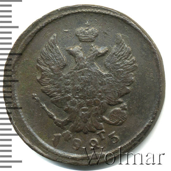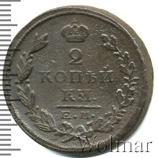 Реверс монеты 2 копейки 1823 года ЕМ-ФГ