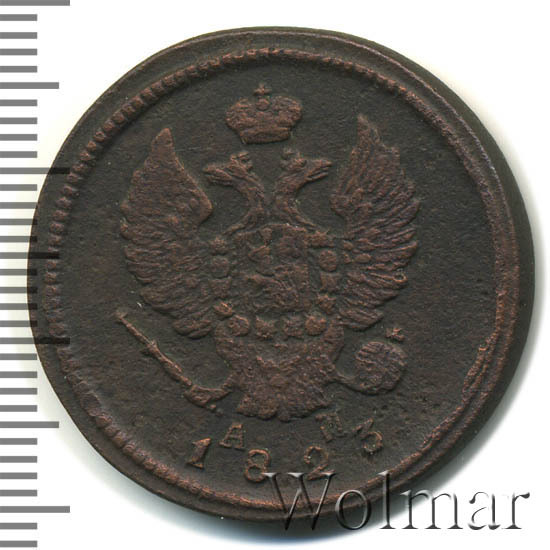 Реверс монеты 2 копейки 1823 года КМ-АМ