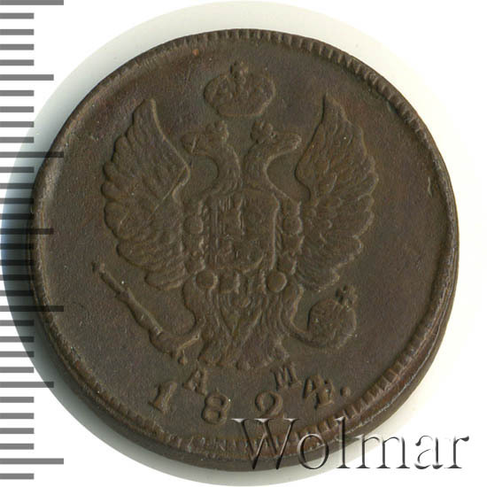 Аверс монеты 2 копейки 1824 года КМ-АМ