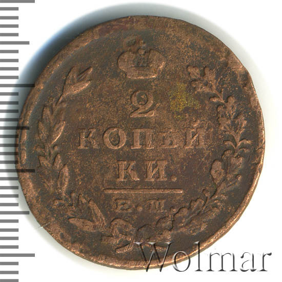 Реверс монеты 2 копейки 1825 года ЕМ-ПГ