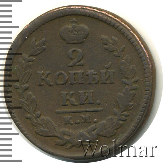 Реверс монеты 2 копейки 1825 года КМ-АМ