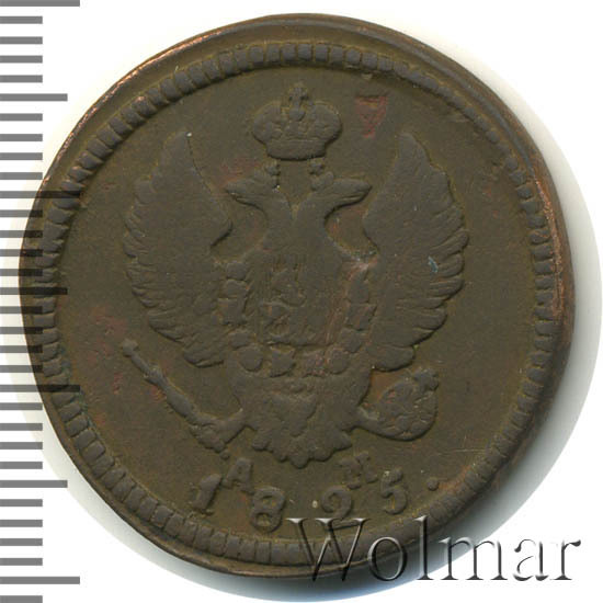 Аверс монеты 2 копейки 1825 года КМ-АМ