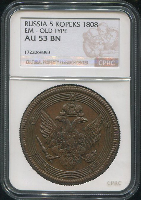 5 копеек 1808 (в слабе)буквы ЕМ Аукцион: AdaCoins Online Состояние: AU 53 BN | 05.06.2025 |