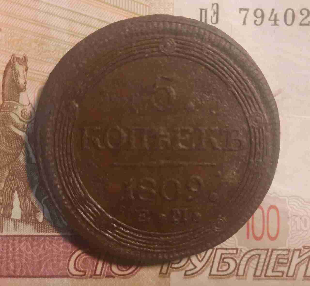 5 копеек — Кольцевик. Орел 2 типа: на аверсе точка с 2 ободками, корона большая. 1809 ЕМ 1809 года ЕМбуквы ЕМ Аукцион: Anumis Состояние: VF | 15.11.2022 |