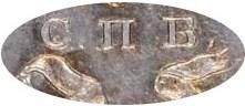 В центре надпись в четыре строки: «ГОСУДАР=»│«СТВЕННАЯ»│«РОССIЙСКАЯ»│«МОНЕТА.». Над надписью - императорская корона. Под надписью - фигурная черта. Под ней - обозначение Санкт-Петербургского монетного двора «С.П Б.». Вдоль канта, не доходя до короны, изображен венок из лавровой и дубовой ветви, которые в нижней части переплетены лентой. По окружности канта имеются рельефные элементы, выполненные в виде зубцов.