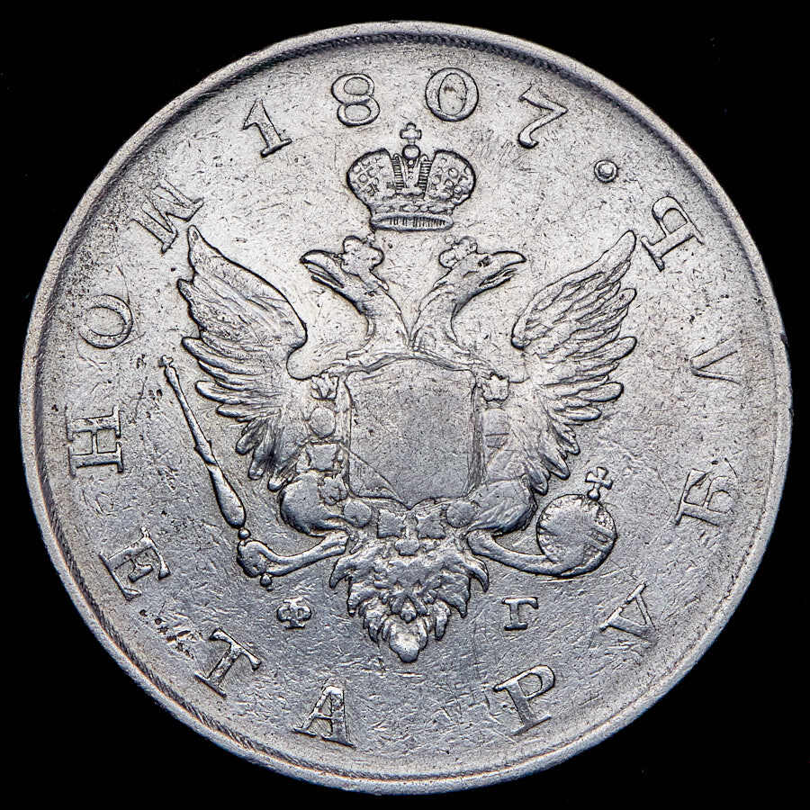 '1 рубль 1807 СПБ-ФГ орёл меньше, бант меньше'