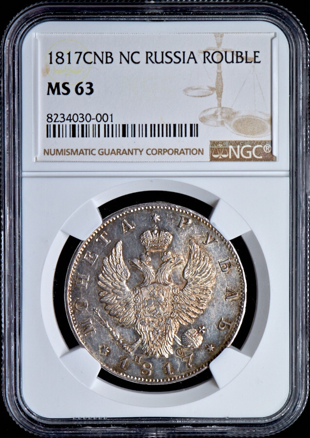 Рубль 1817 (в слабе)буквы СПБ-ПС Аукцион: AdaCoins Online Состояние: MS 62 | 07.07.2022 |