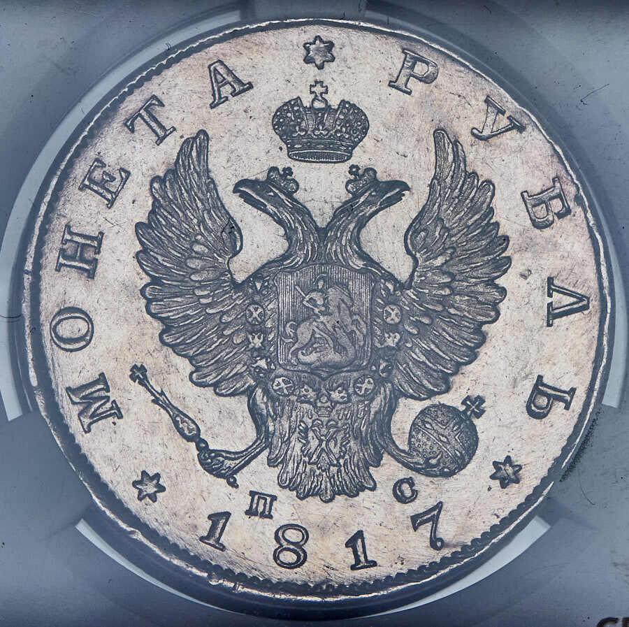 Цена на монету 1 рубль 1817 года СПБ-ПС скипетр короче на сегодня, 23 января 2026 года