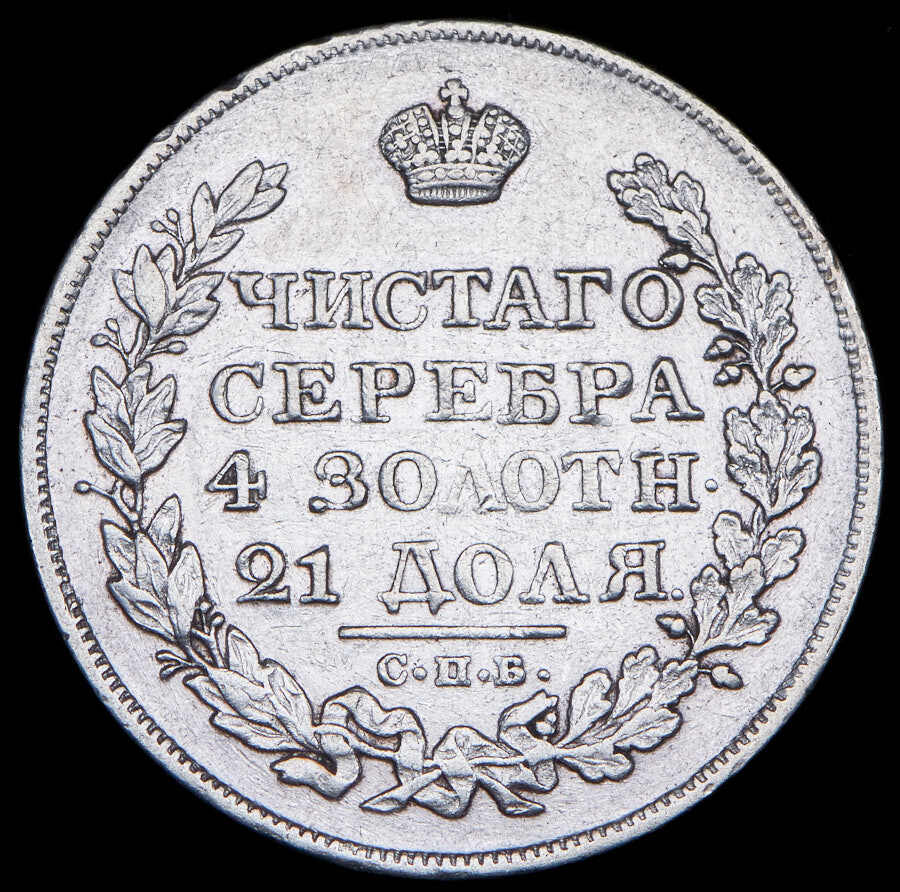 Реверс монеты 1 рубль 1825 года СПБ-ПД