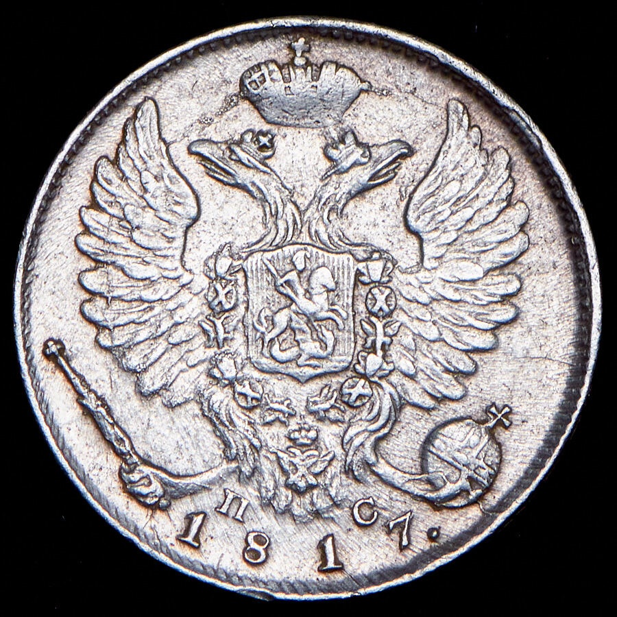 Аверс монеты 10 копеек 1817 года СПБ-ПС