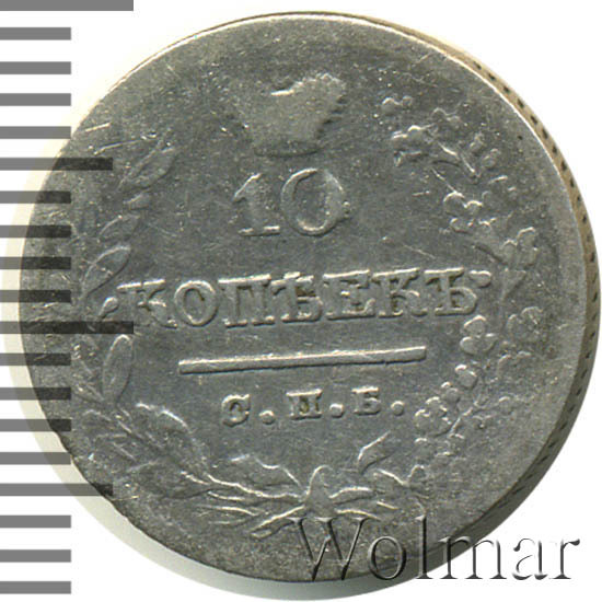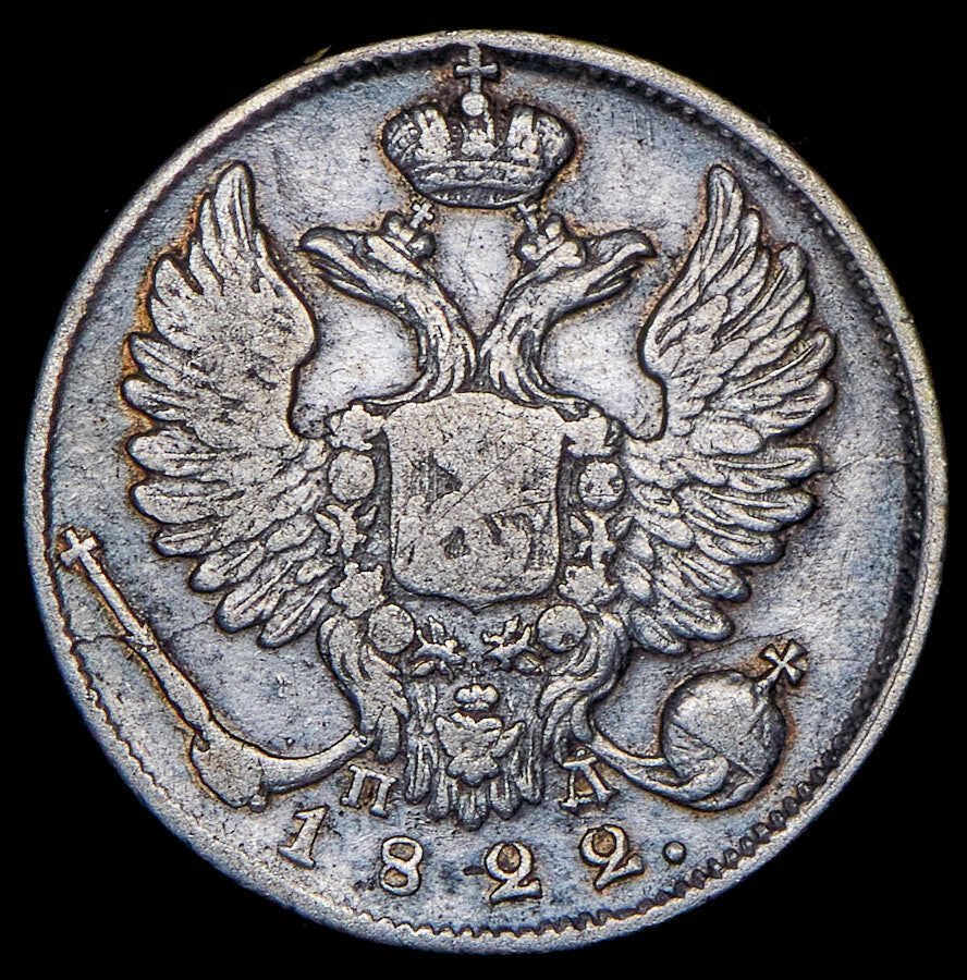 Аверс монеты 10 копеек 1822 года СПБ-ПД
