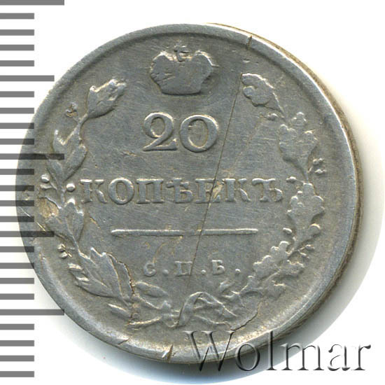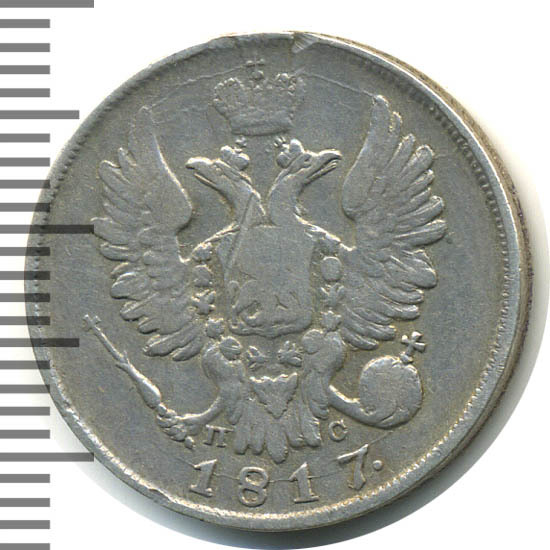 Аверс монеты 20 копеек 1817 года СПБ-ПС