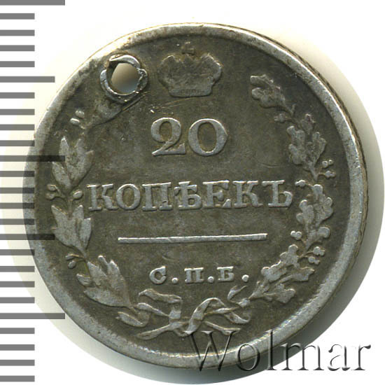 Аверс монеты 20 копеек 1821 года СПБ-ПД