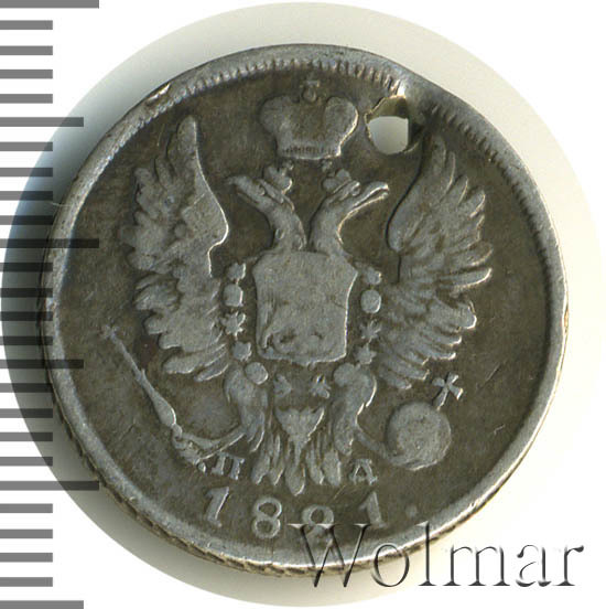 20 копеек. Заделано отверстиебуквы СПБ ПД Аукцион: Wolmar Standart Состояние: VF | 20.08.2025 |