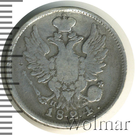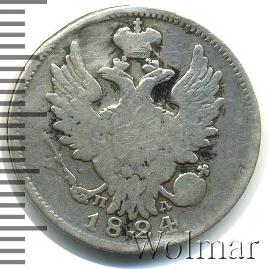 Цена на монету 20 копеек 1824 года СПБ-ПД на сегодня, 24 октября 2025 года