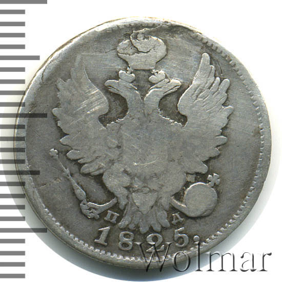 Цена на монету 20 копеек 1825 года СПБ-ПД на сегодня, 24 октября 2025 года