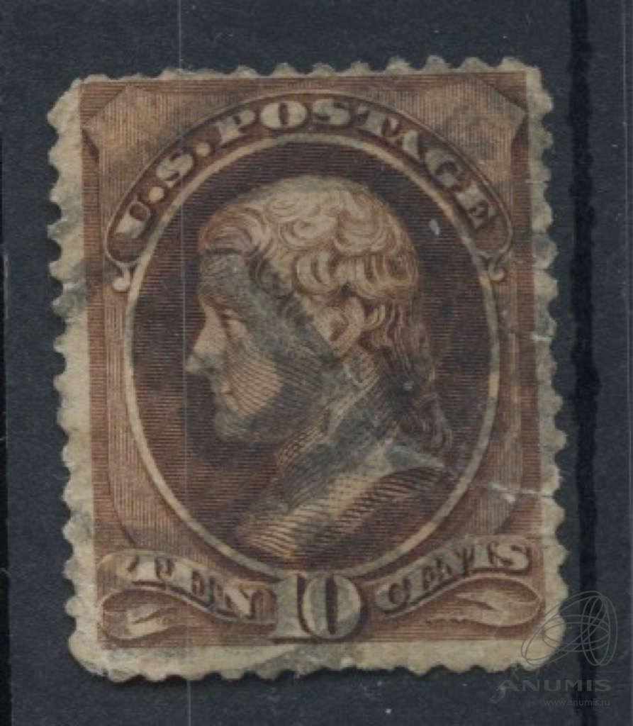 Прошедшая почту марка 10 центов «Томас Джефферсон». редкая, стоимость по каталогу = 31 USD для б/у 1870 года Аукцион: Anumis | 21.03.2023 |